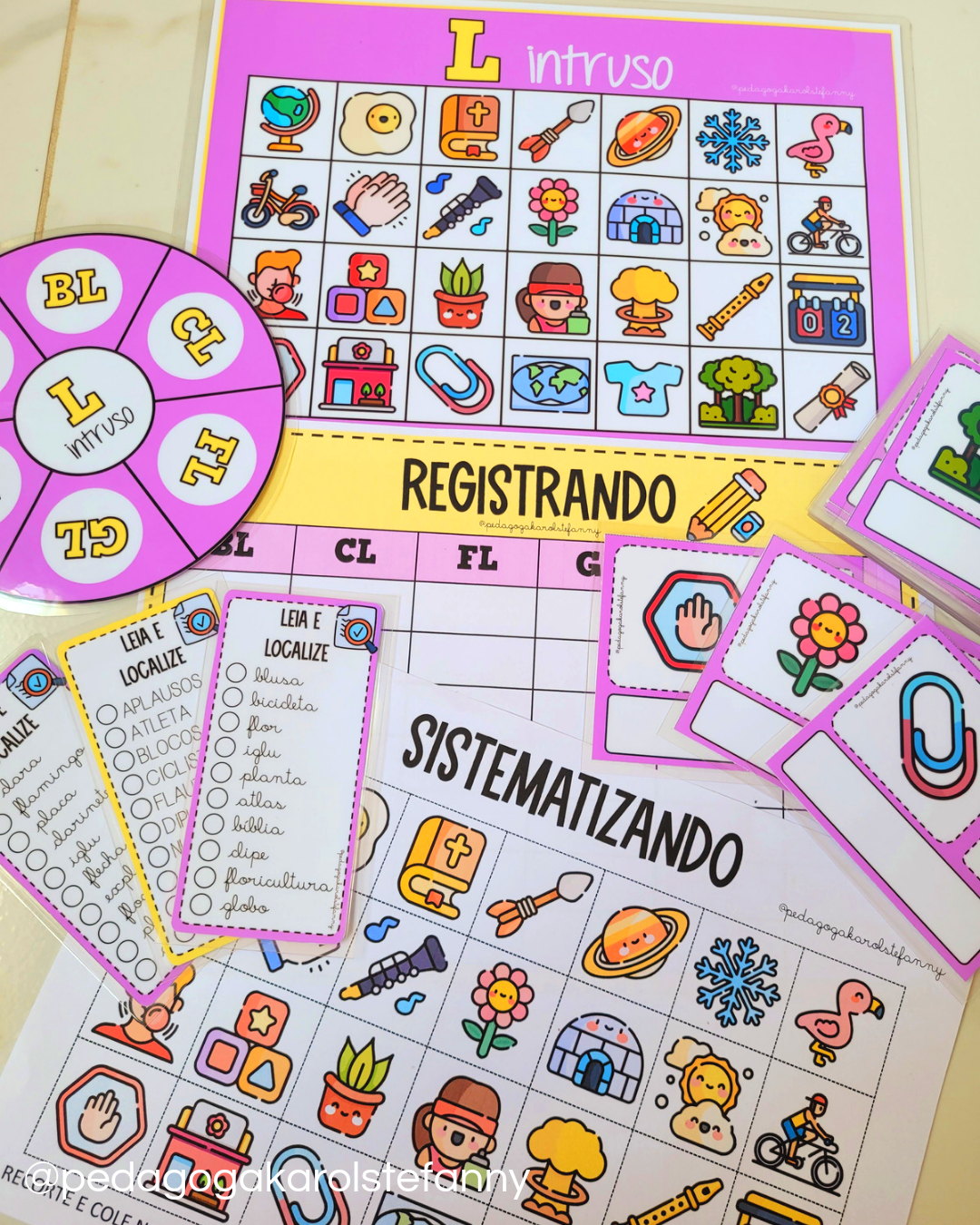 – 6 FICHAS DE LEITURA: letra bastão e cursiva.